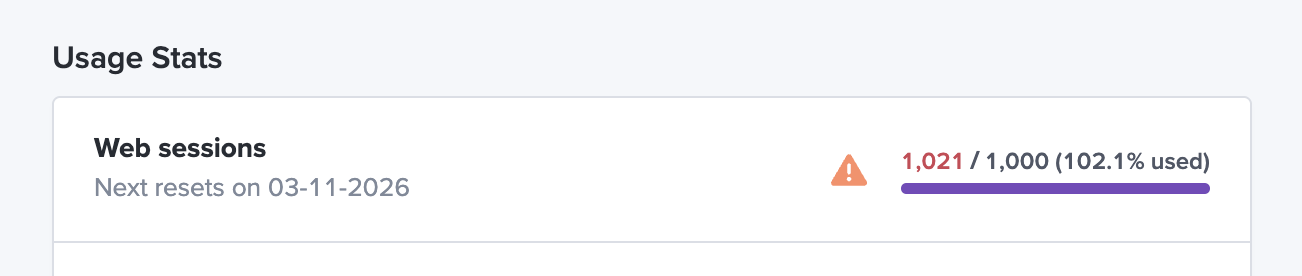 - You will see a red warning on your LogRocket dashboard if your session quota has been met.